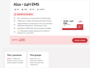 • CTS : Exploitation du réseau de transports en commun de voyageurs sur le territoire de l’Eurométropole de Strasbourg./ Tarifs réduits au CSE sur les carnets de 10 tickets.